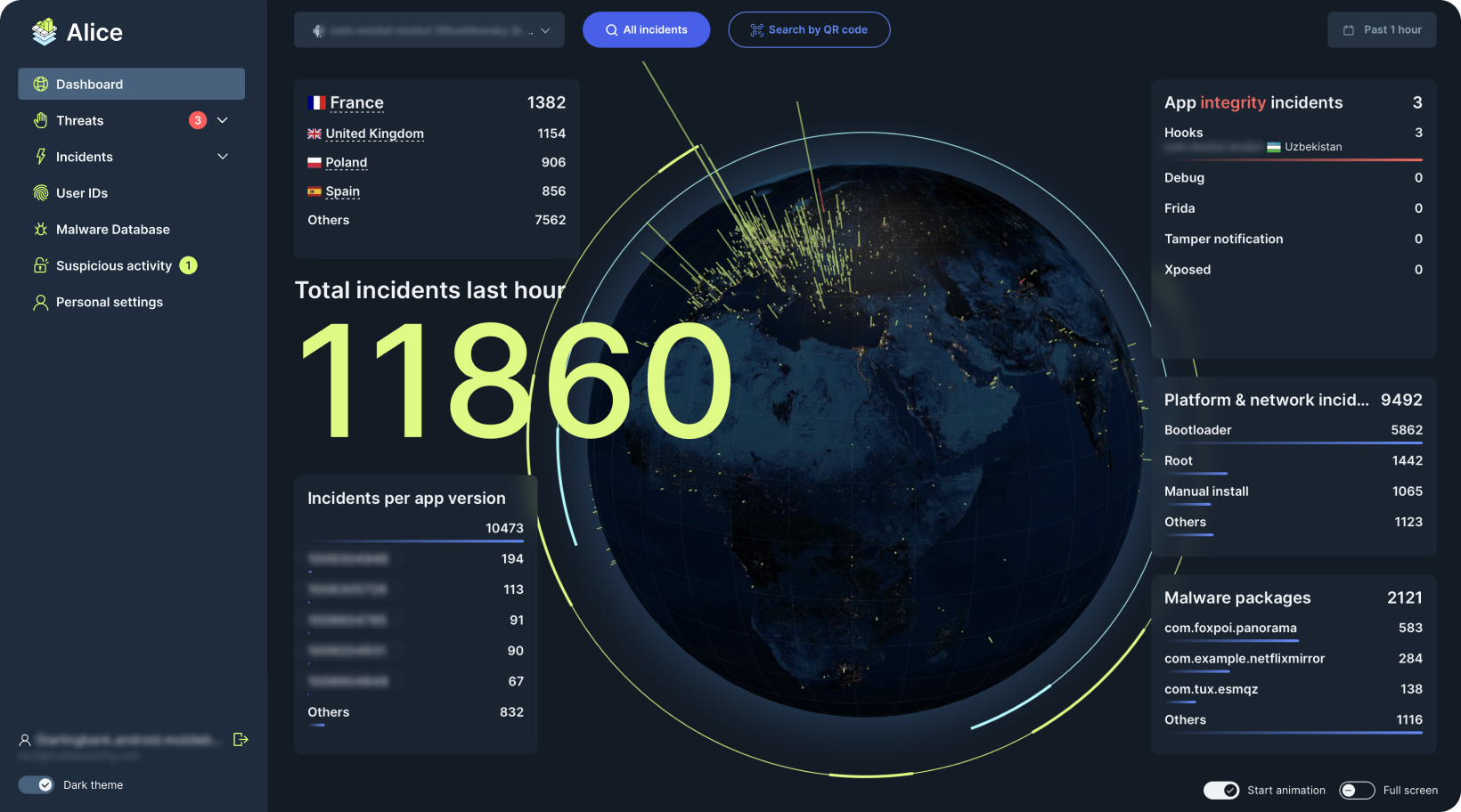 Alice Threat Intelligence is a key component for mitigating modern attacks against mobile applications and user data. The latest version introduces a redesigned Dashboard UI that provides real-time visualizations of prevented attacks and correlated threat activity across devices.